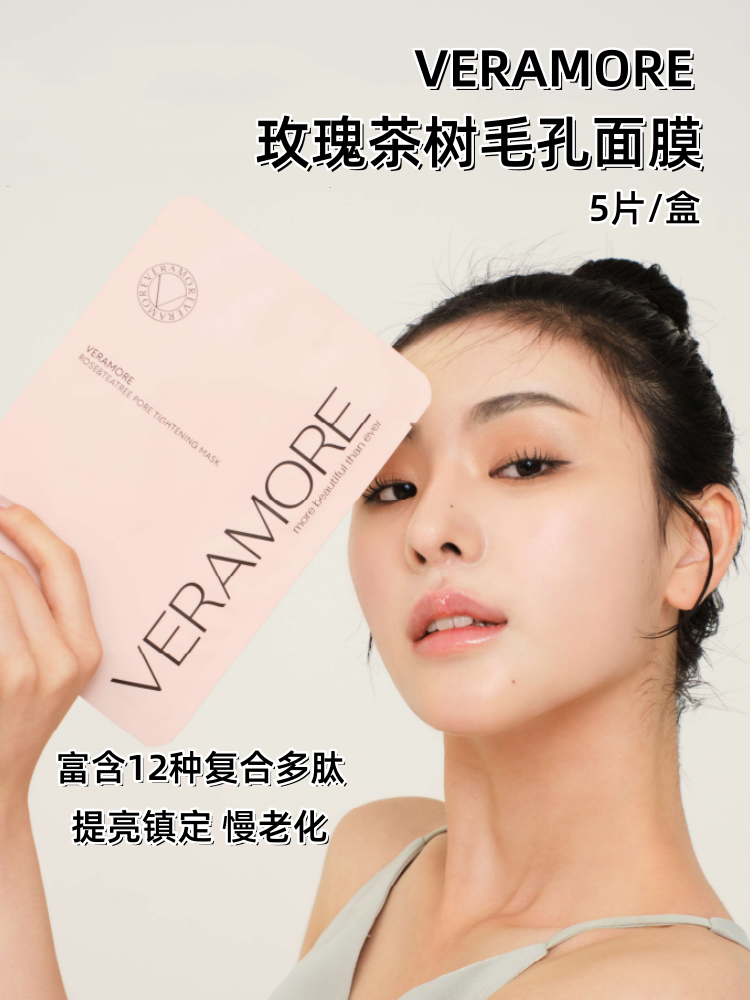 قناع تفتيح شجرة الشاي الوردي من فيرامور 5 قطع نياسيناميد المهدئ والمهدئ يحسن البهتان والجفاف ومكافحة الشيخوخة.