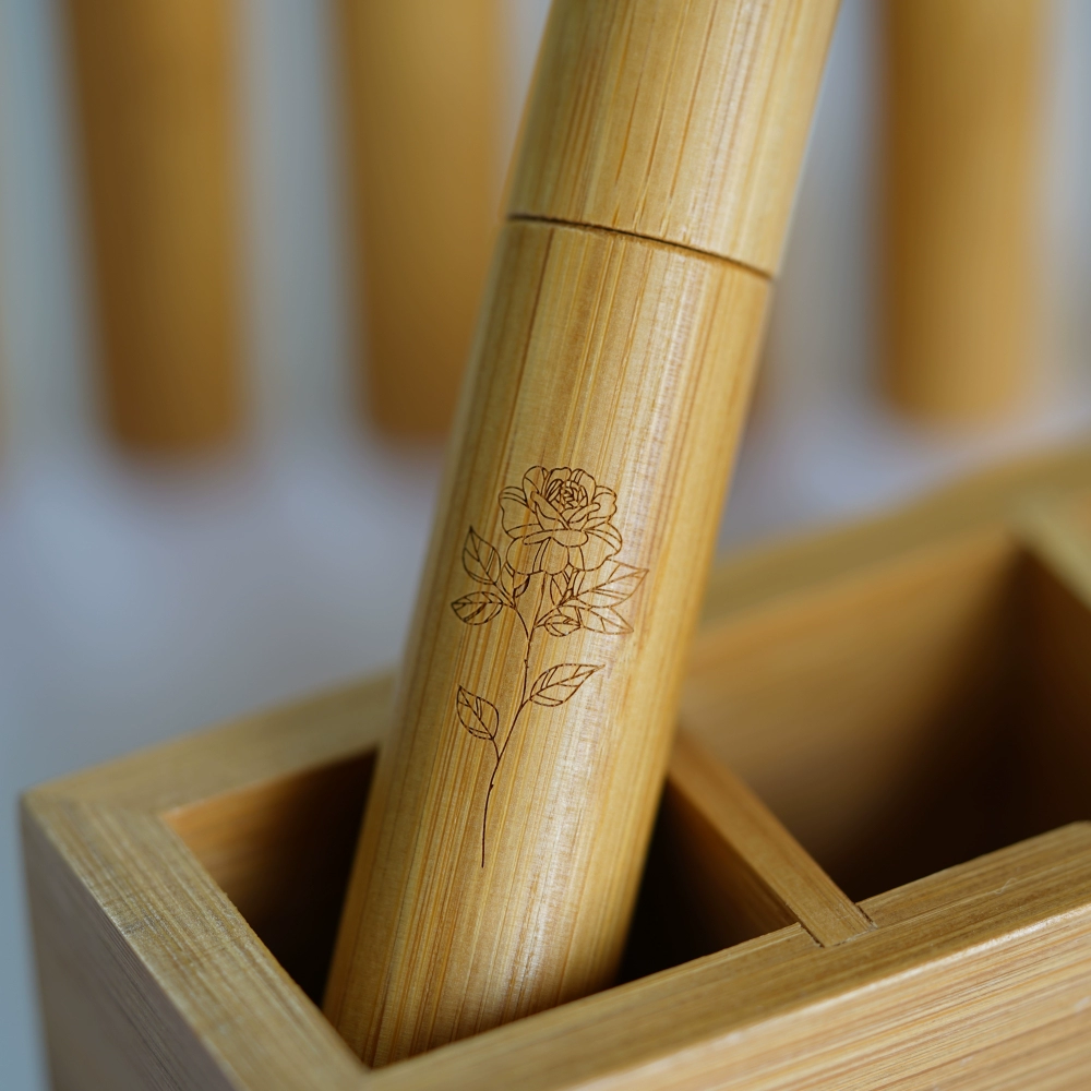 زجاجة كروية دوارة من الخيزران الطبيعي ذات نمط زهرة على الطراز الوطني
