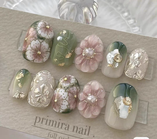 الأظافر المصنوعة يدويًا، الأظافر المزيفة، أظافر العلاج بالضوء، قلادة صدفة وردية متقدمة، مانيكير على الطريقة اليابانية، مانيكير على الطراز الداخلي
