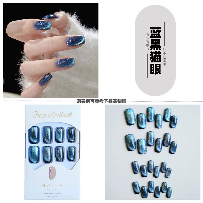 علاج ضوئي باللون الأزرق والأسود، وأظافر صناعية راقية وعيون قطة كريستالية
