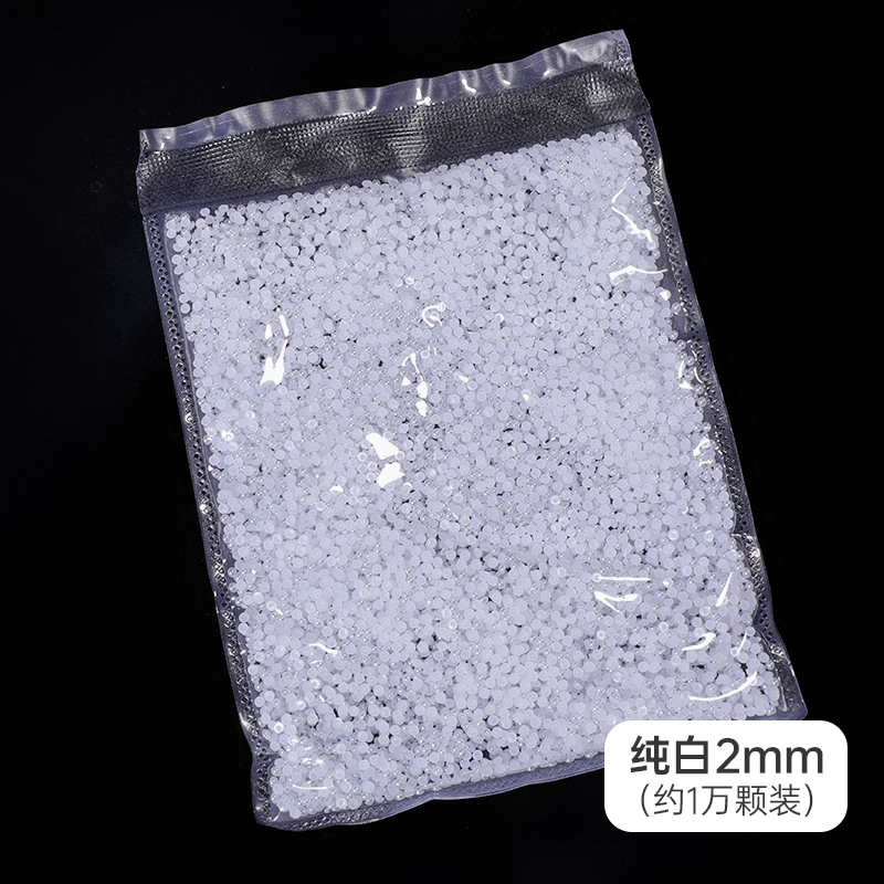 لآلئ عصرية ذات قاع مسطح وشبه دائرية بيضاء نقية وشديدة اللمعان لا تتقشر ولا تحتوي على ثقوب لتزيين الأظافر، حصريًا لصالونات الأظافر.