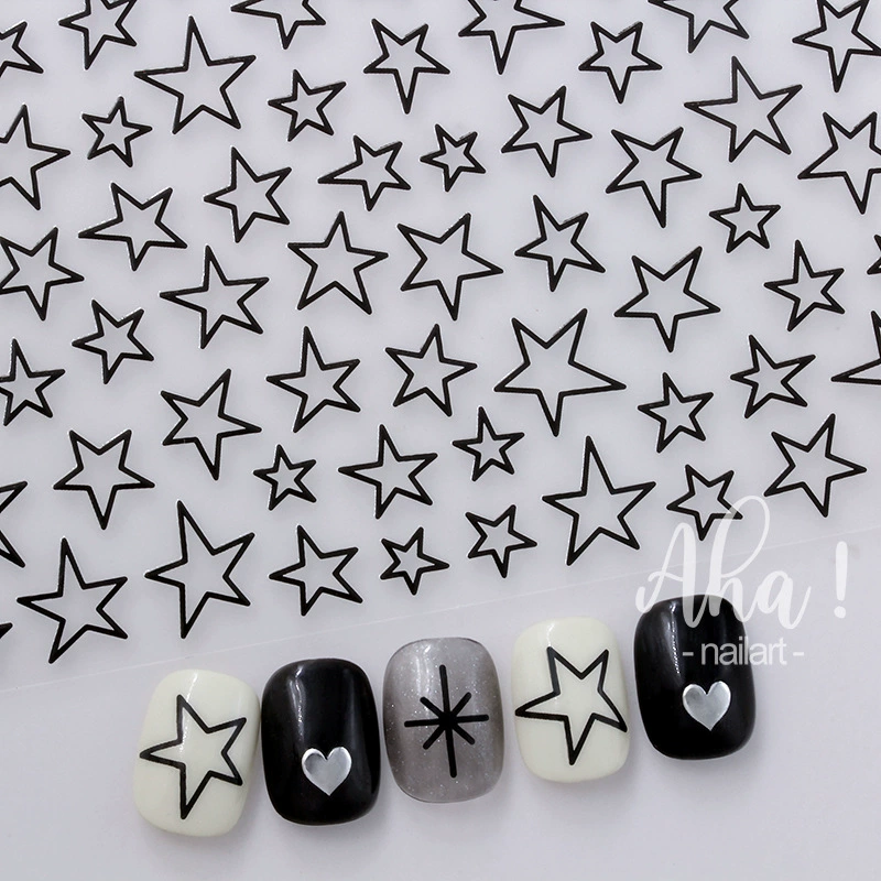 المشاهير على الإنترنت نجمة معدنية خماسية فضية شهيرة Y2K نفس النمط ملصقات أظافر على شكل نجمة على شكل نجمة لتزيين الأظافر على شكل نجمة