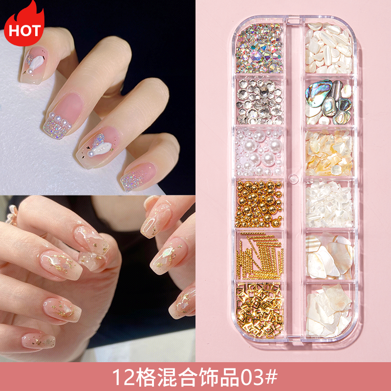 إكسسوارات اللؤلؤ مختلطة نصف دائرة سوبر فلاش الماس مانيكير