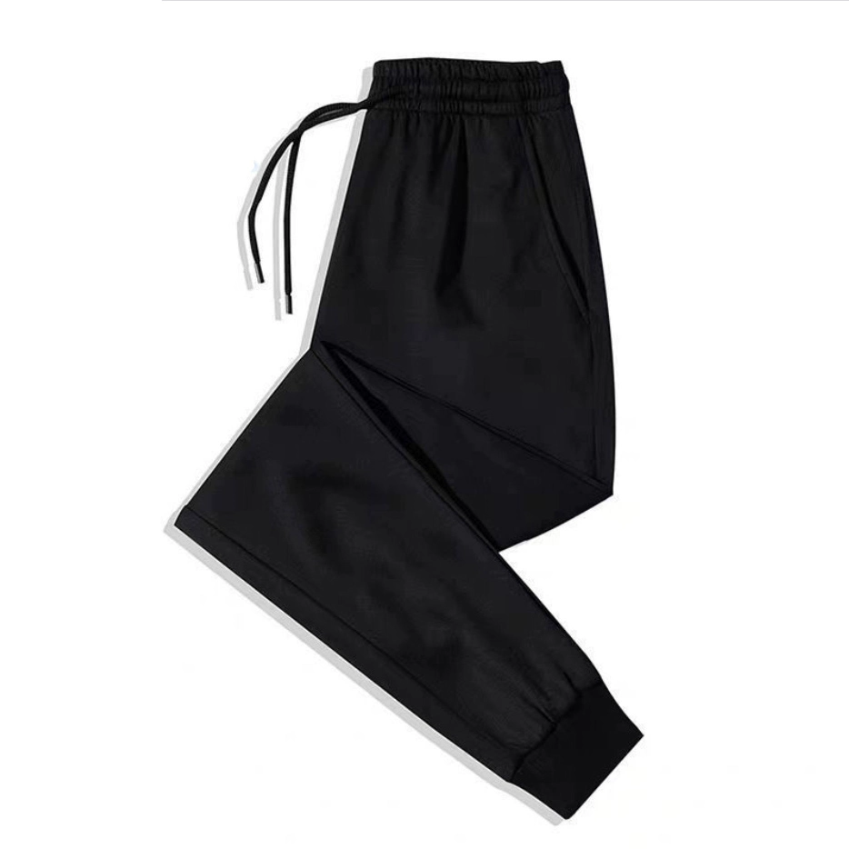سروال تدريب بشعار أسود مناسب للملابس الرياضية النسائية.