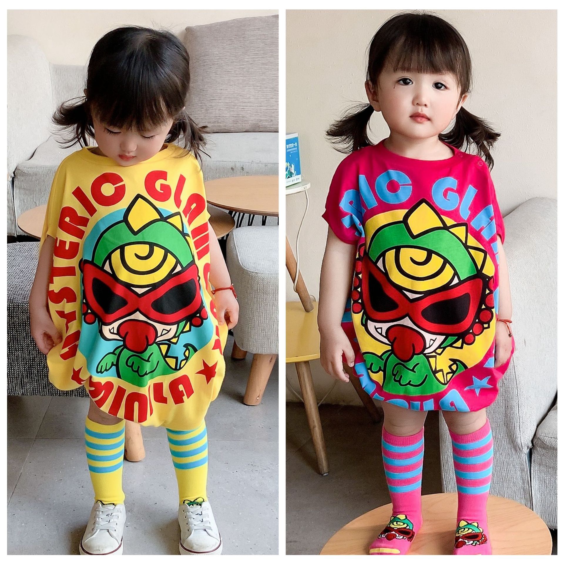 فطيرة كبيرة ملابس الأطفال INS ملابس الأطفال بذلة الكرتون للبنين والبنات صيف جديد فضفاض تسلق الملابس للأطفال