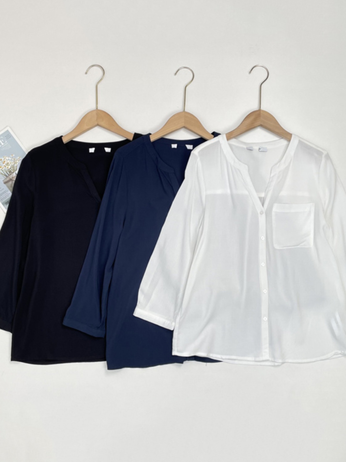 قميص Dongdaemun فضفاض برقبة دائرية وأكمام طويلة وصدر واحد