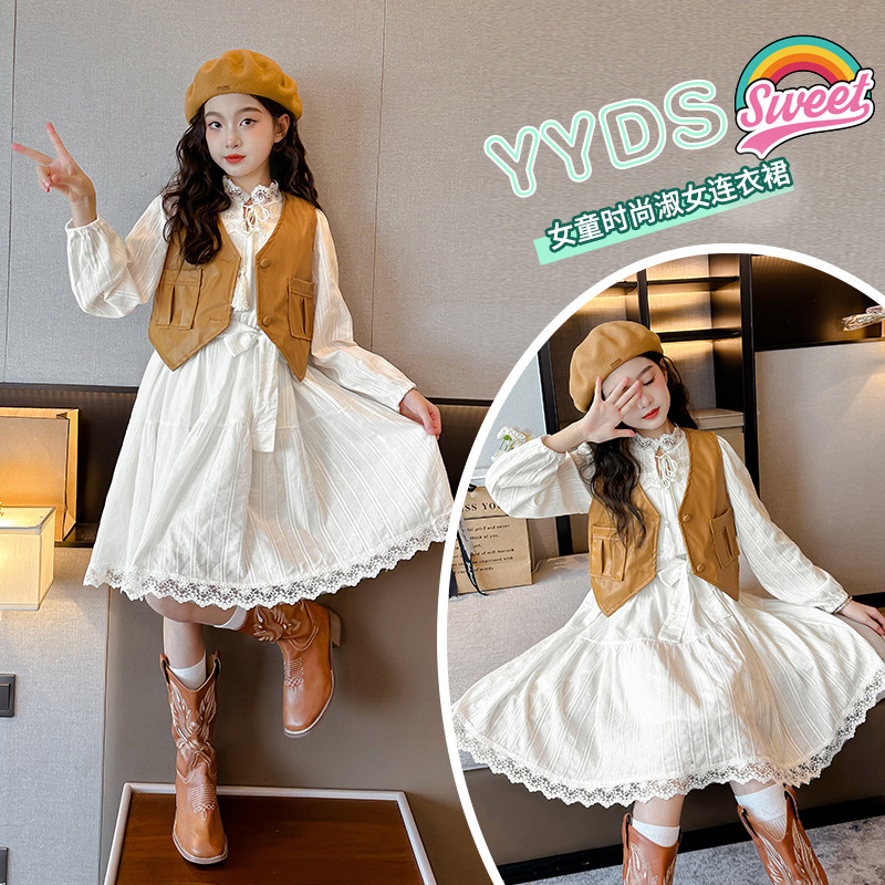 فستان بناتي كبير للأطفال على الموضة ذو طراز شعبي بدلة أطفال من قطعتين لخريف 2023 جديد