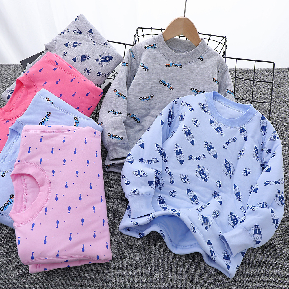 تي شيرت داخلي للأطفال بنصف الياقة المدورة للأولاد والبنات للخريف والشتاء سميك مبطن بالصوف المصقول الدافئ بأكمام طويلة