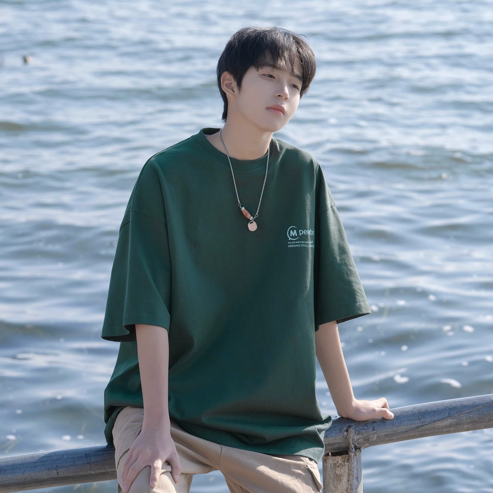 تي شيرت عصري على الطراز الياباني ذو أكمام قصيرة ورقبة صغيرة