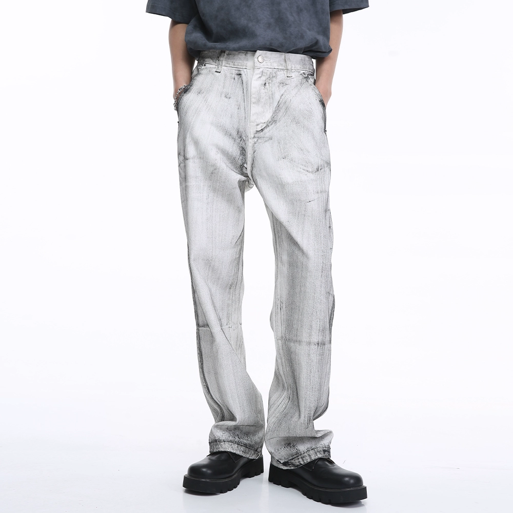 سراويل هيب هوب أمريكية كلاسيكية عصرية مطبوعة بأرجل مستقيمة وخمسة أرجل فضفاضة واسعة الساق غير رسمية من قماش الدنيم للرجال والنساء