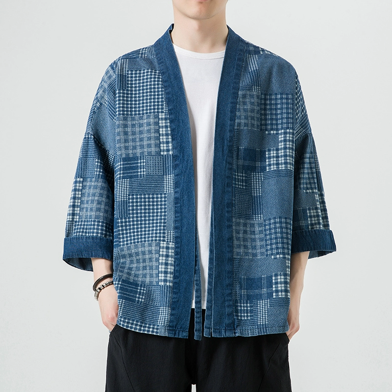 قميص من الدنيم على الطراز الصيني Hanfu مكشوف الأكتاف بأكمام قصيرة