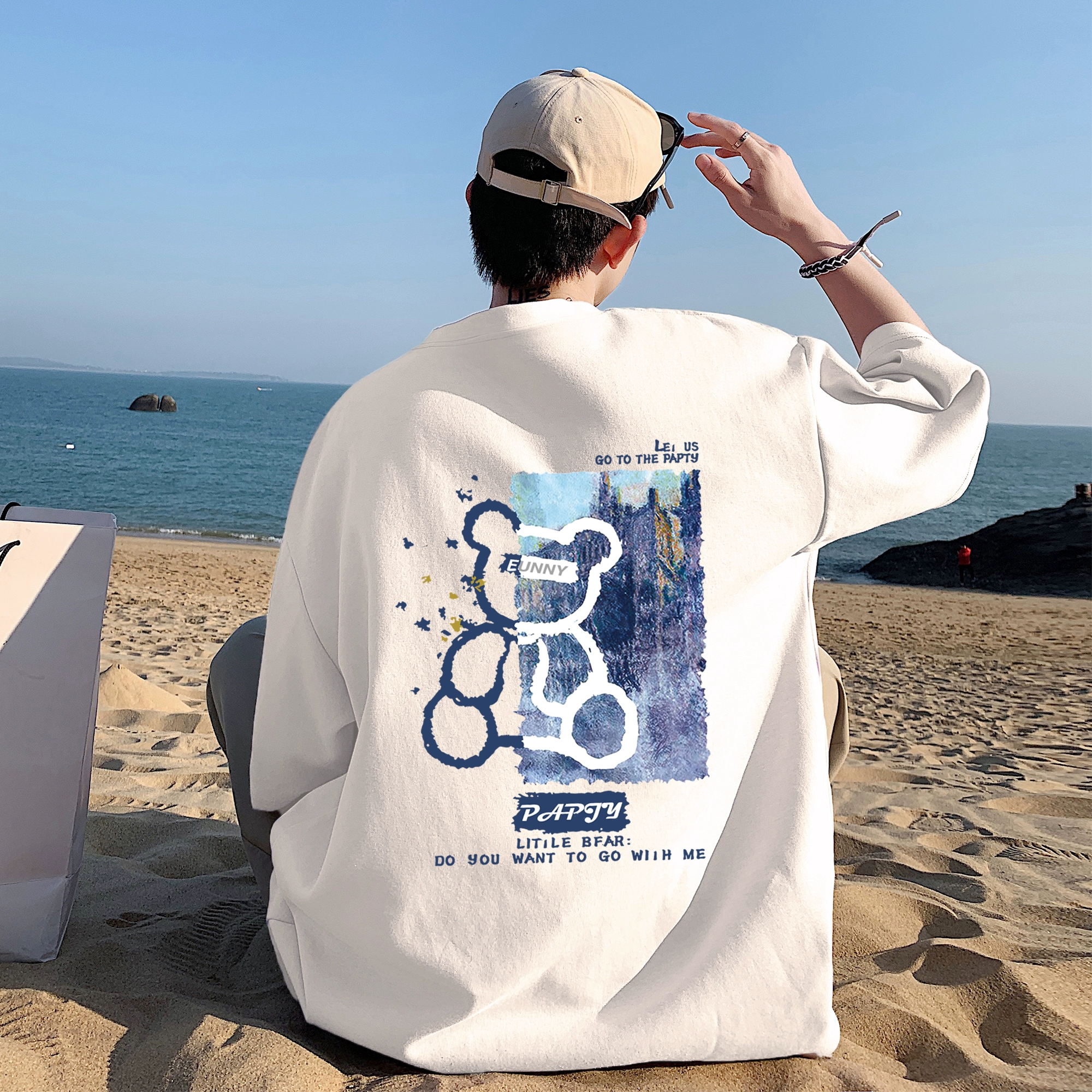 العلامة التجارية العصرية الجميلة والرائعة المطبوعة بأكمام قصيرة رسوم متحركة هيب هوب الرجعية