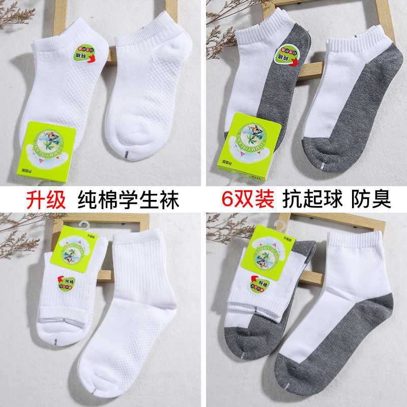 جوارب للأطفال للربيع/الصيف والخريف رقيقة للأولاد جوارب بيضاء منتصف الساق جوارب للطلاب جوارب بيضاء نقية للفتيات جوارب للقوارب جوارب رياضية