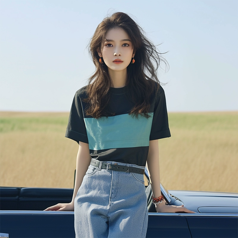 تي شيرت أنيق بأكمام قصيرة متباين، قميص صيفي رائع للغاية