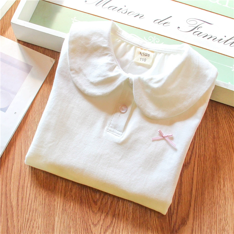 قميص للفتيات للربيع والخريف على طراز الكلية، قميص أبيض للأطفال من القطن الخالص يسمح بمرور الهواء، تي شيرت متعدد الاستخدامات للأطفال