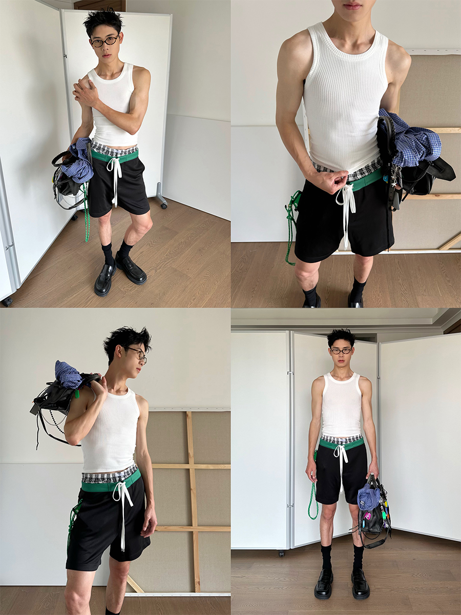 شورت خفيف الوزن ذو طبقة مزدوجة كاجوال على الطراز الياباني القديم