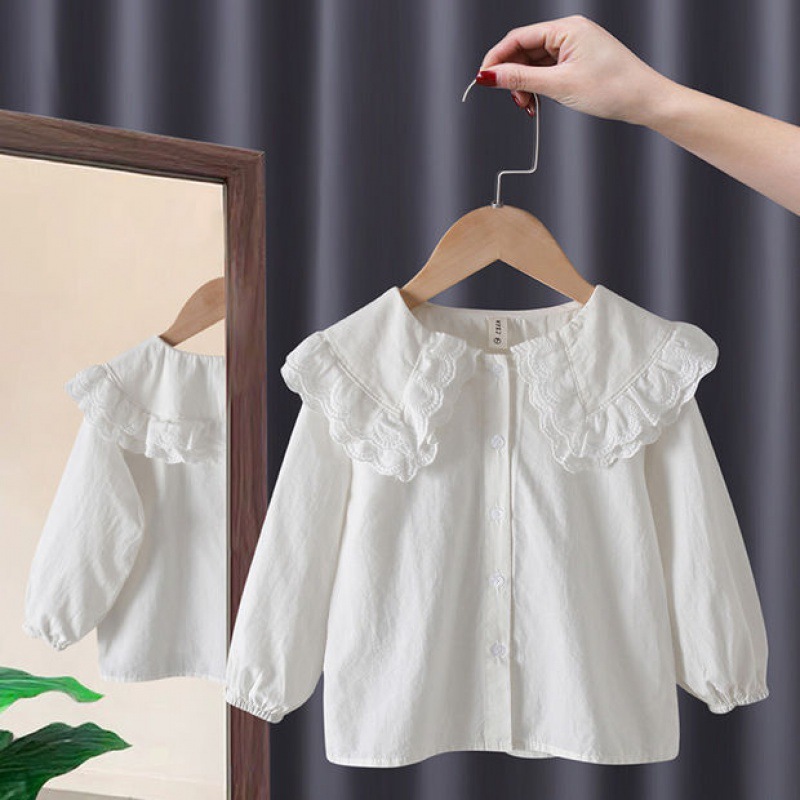 قميص الفتيات 2023 خريف جديد للأطفال الدانتيل الأميرة قاع قميص النمط الغربي الطفل قميص طويل الأكمام
