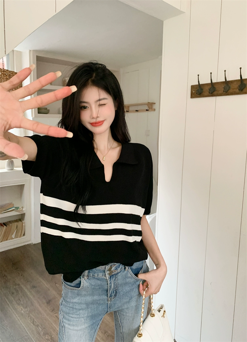 بلوزة شيفون فرنسية تقلل العمر 2024 جديدة بأكمام قصيرة