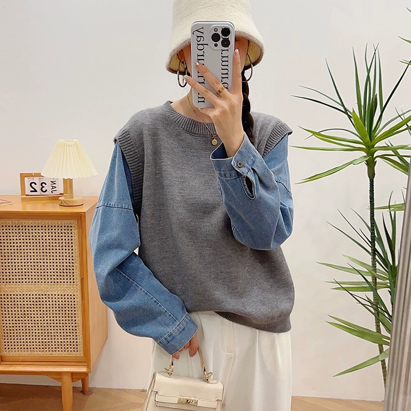 الخريف والشتاء فضفاض الربط نمط الساخنة السترة قاعدة وهمية قطعتين
