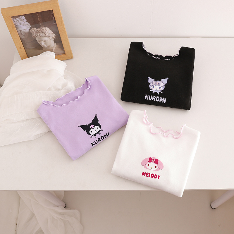 قميص الفتيات الكرتوني الملون الدافئ قاع الربيع والخريف بأكمام طويلة تي شيرت الأطفال الأذن الخشبية الطفل كل مباراة