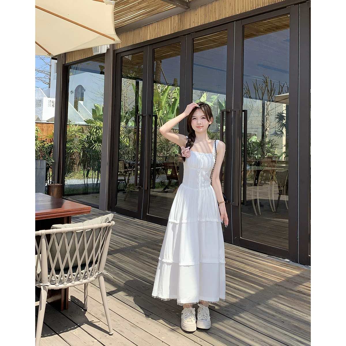 فستان الحمالة على شكل كعكة مزاجية للحب الفرنسي الأول في الصيف