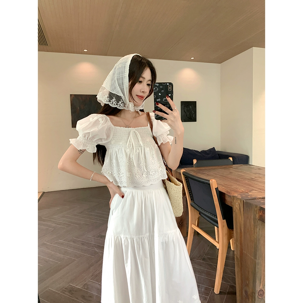 قميص نسائي صيفي أبيض بسيط على شكل تنورة على شكل حرف A
