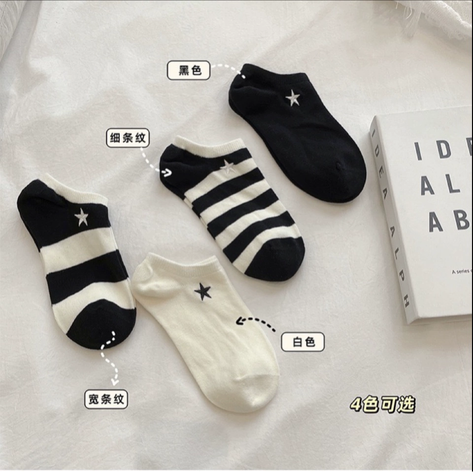 جوارب نسائية للربيع والصيف مطرزة باللونين الأسود والأبيض، جوارب قارب قابلة للتنفس