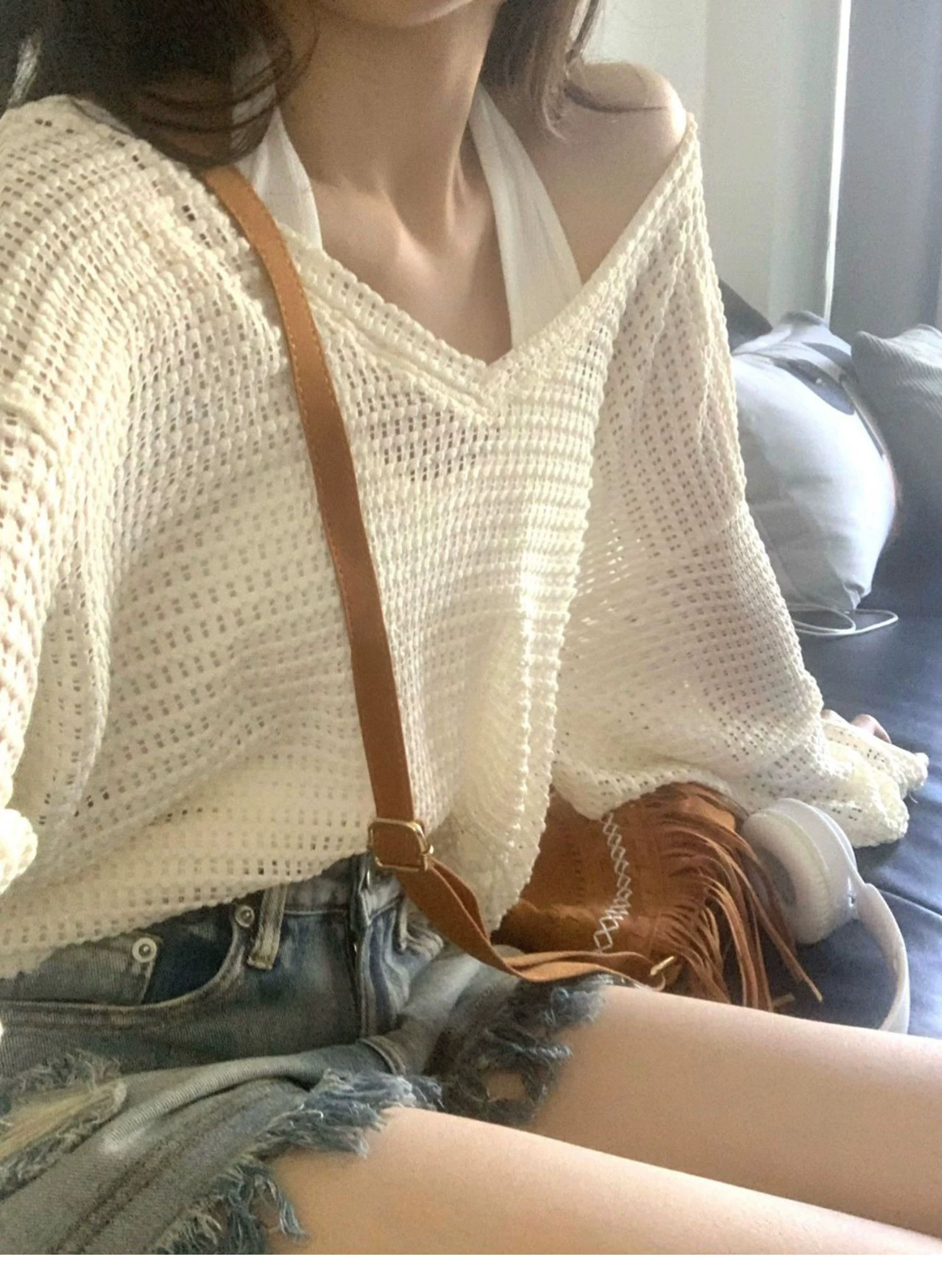 سترة محبوكة أوروبية وأمريكية بسيطة ورقيقة للغاية وعالية الخصر