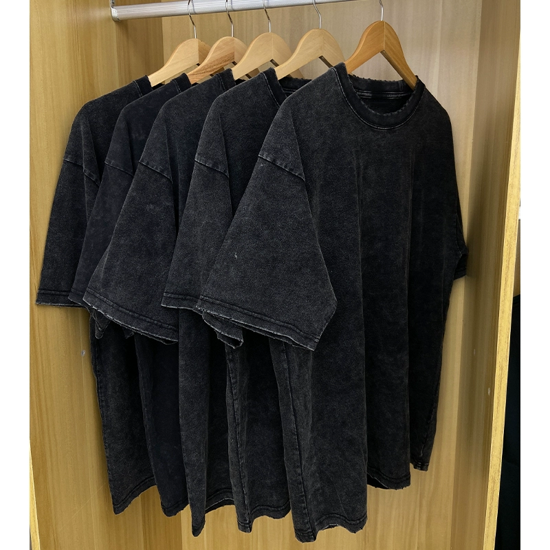 تي شيرت أوروبي وأمريكي مغسول بأكمام قصيرة وأكتاف منسدلة للسيدات صيفي 250 جم قميص قطني فضفاض كبير الحجم ثقيل