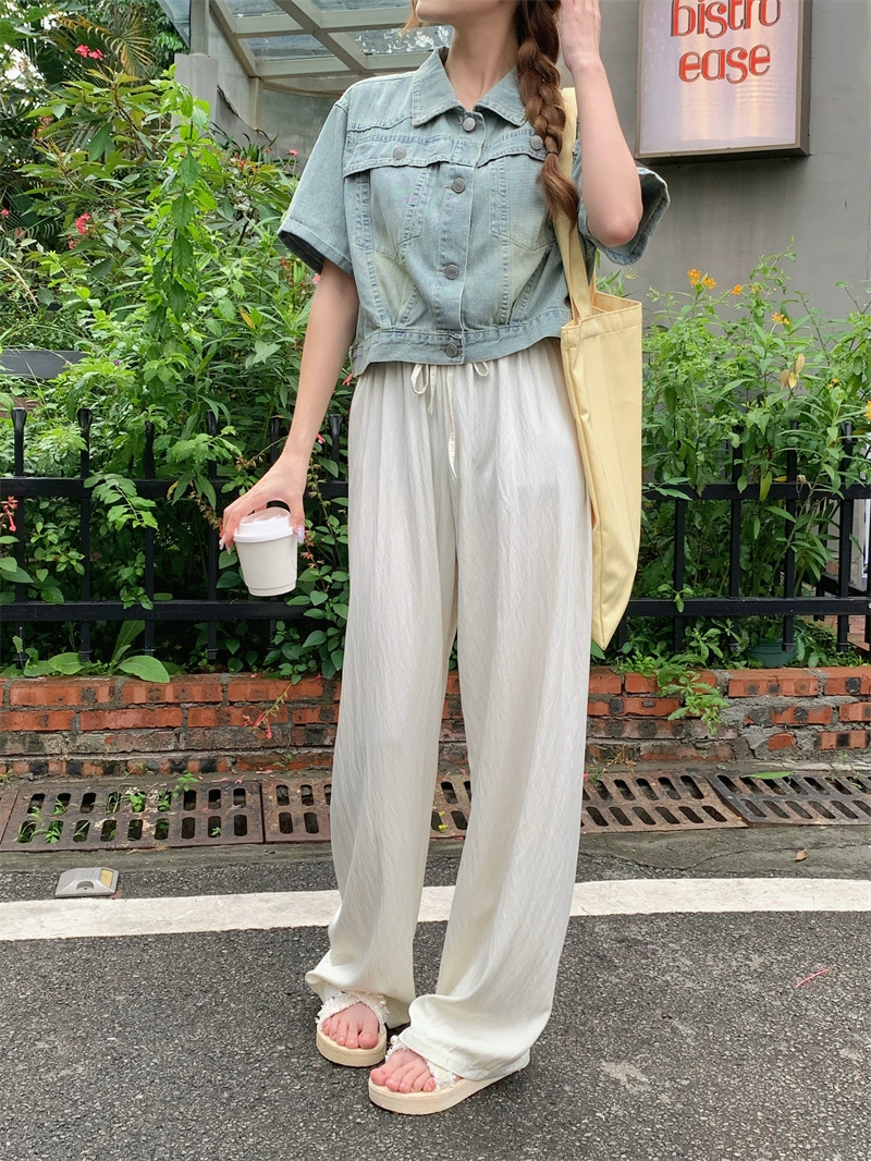 سترة دنيم رفيعة عصرية فضفاضة ذات أكمام قصيرة مخصصة