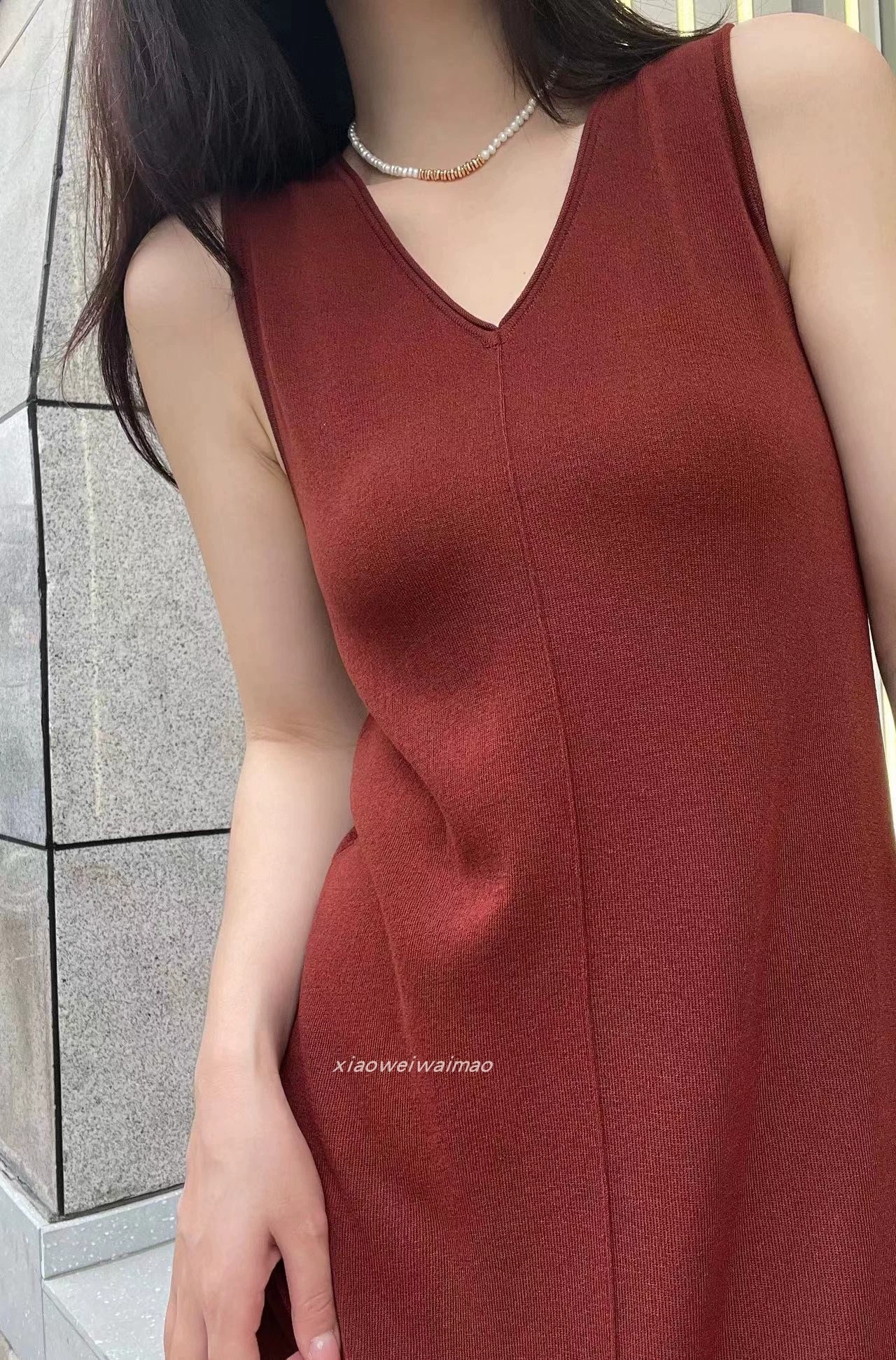 فستان طويل منسوج من الحرير والكتان بياقة على شكل V 24A