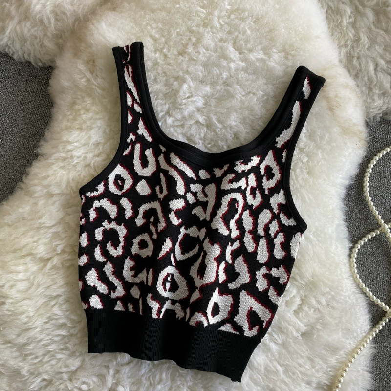 جزء علوي سفلي بقصة ضيقة ولون متباين مع طباعة جلد الفهد لتقليل العمر مع حمالات