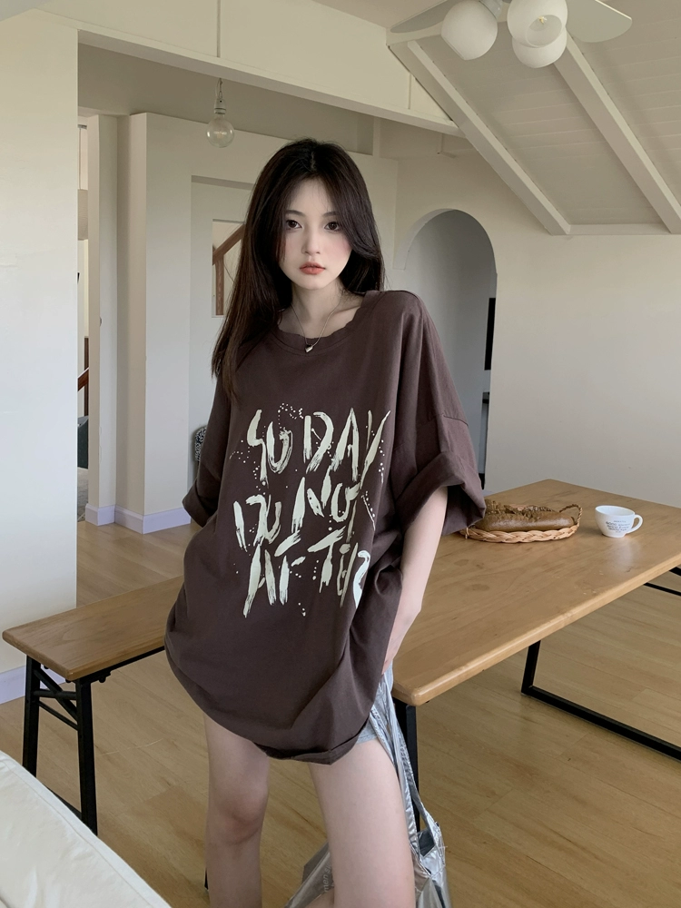 تي شيرت نسائي مقاس كبير من الدهون الأمريكية مم راجلان فضفاض بأكمام قصيرة عصري صيفي رمادي علوي كوري متعدد الاستخدامات