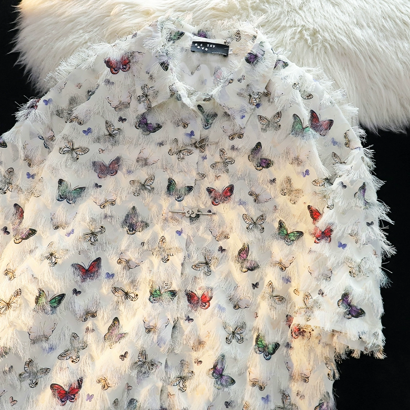 فراشة المتخصصة شرابة قصيرة الأكمام زوجين التطريز الجميل