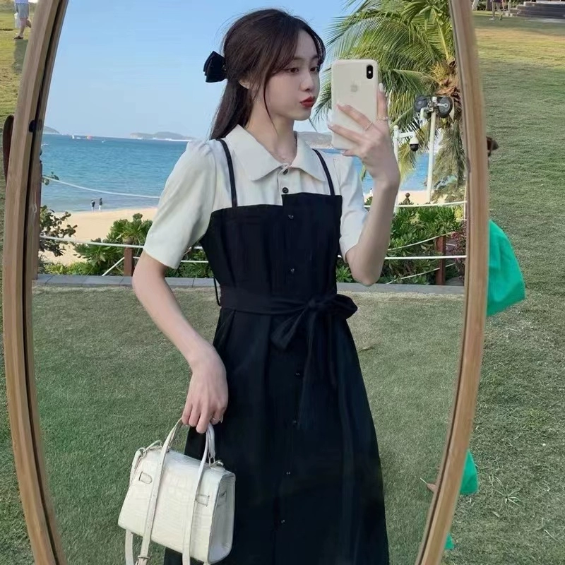 فستان قميص صيفي أنيق من قطعتين لاستراحة الشاي