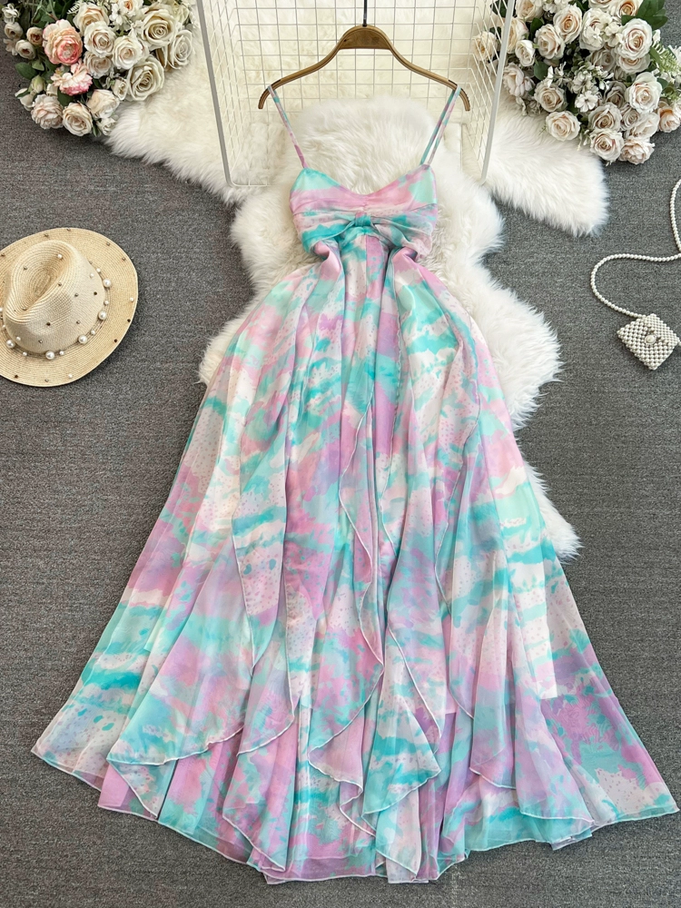فستان بحمالات متدرج على الخصر على شكل حرف A، جزء علوي من أنبوب الجنية