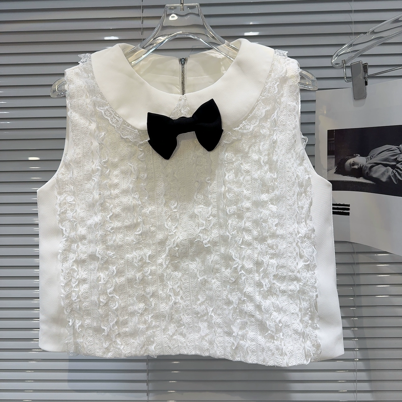 سترة سيدة أنيقة ذات ثنيات على الإنترنت مع زخرفة على شكل فيونكة