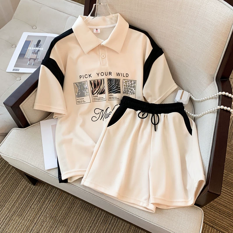 بدلة رياضية كاجوال بياقة بولو بألوان متباينة للنساء لصيف 2024 شورت فضفاض بأكمام قصيرة، طقم عصري مكون من قطعتين عصري ومقلل للعمر