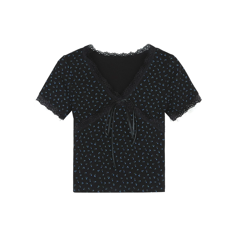بدلة فتاة حلوة قصيرة الأكمام تي شيرت السراويل عارضة الدانتيل تقليم