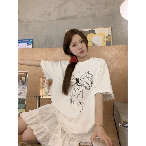 بلوزة نسائية صيفية فضفاضة بأكمام قصيرة من الدانتيل المجوف