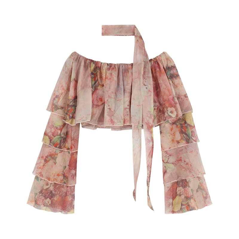 تنورة منتفخة بكتف واحد وقميص شيفون من قطعتين
