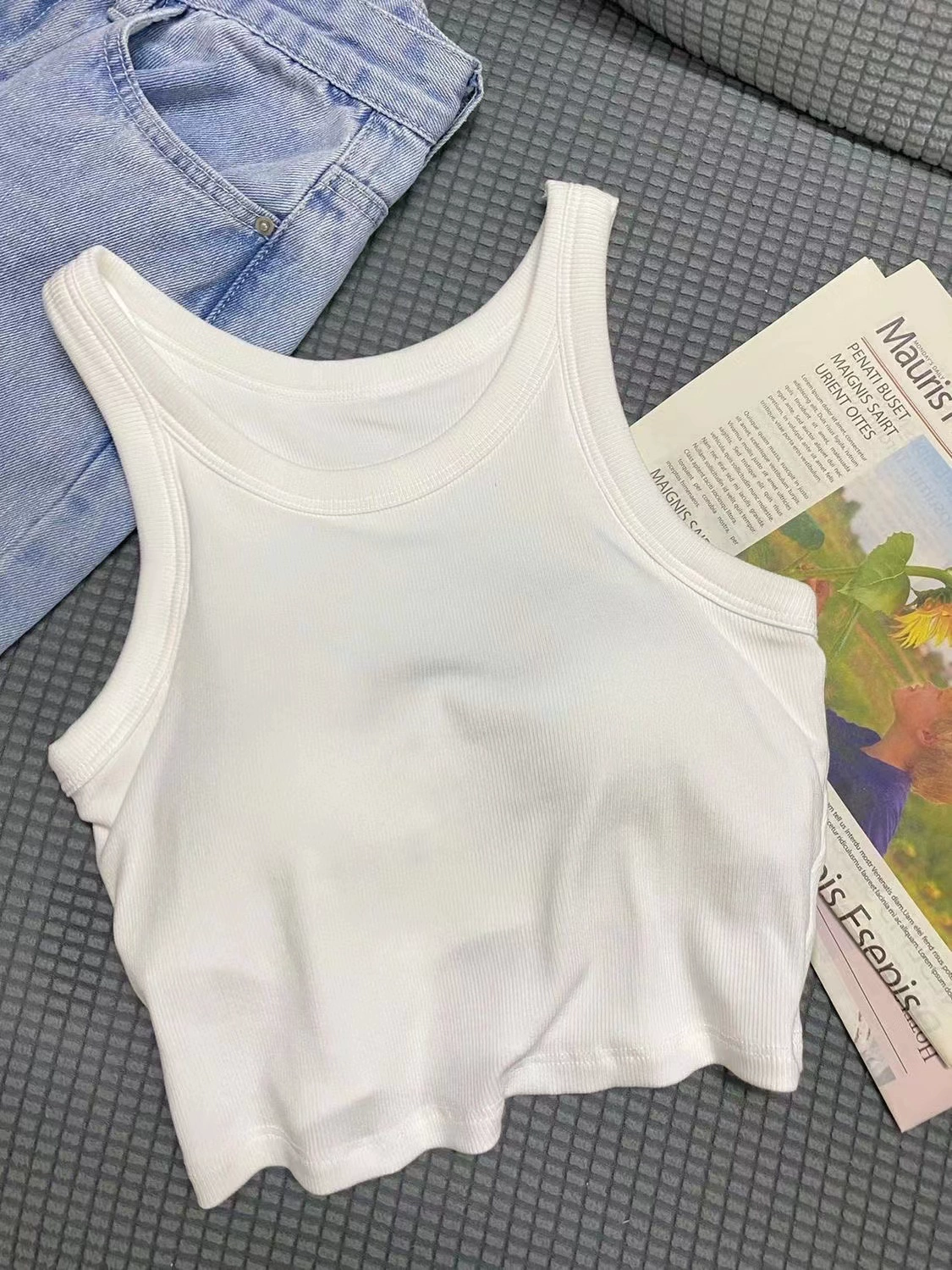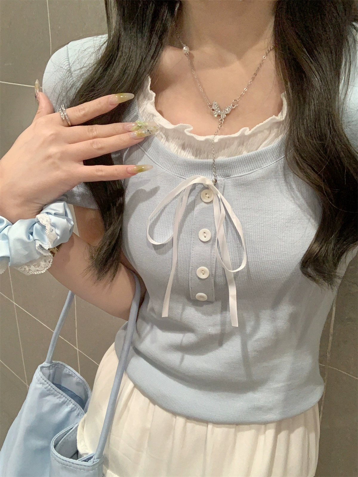 تي شيرت صيفي بأكمام قصيرة وكتف نحيف بتصميم كلاسيكي