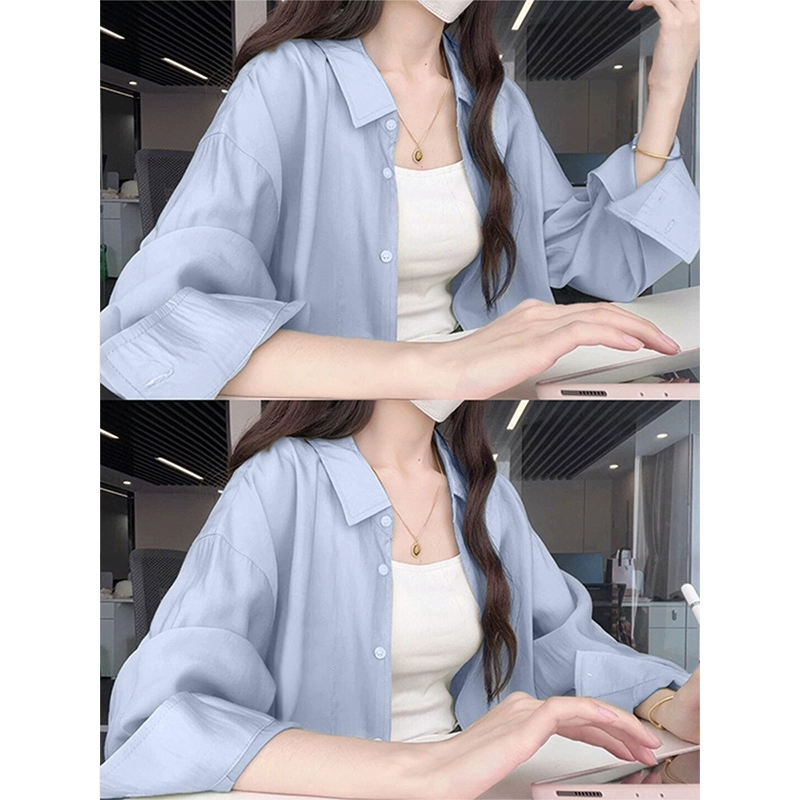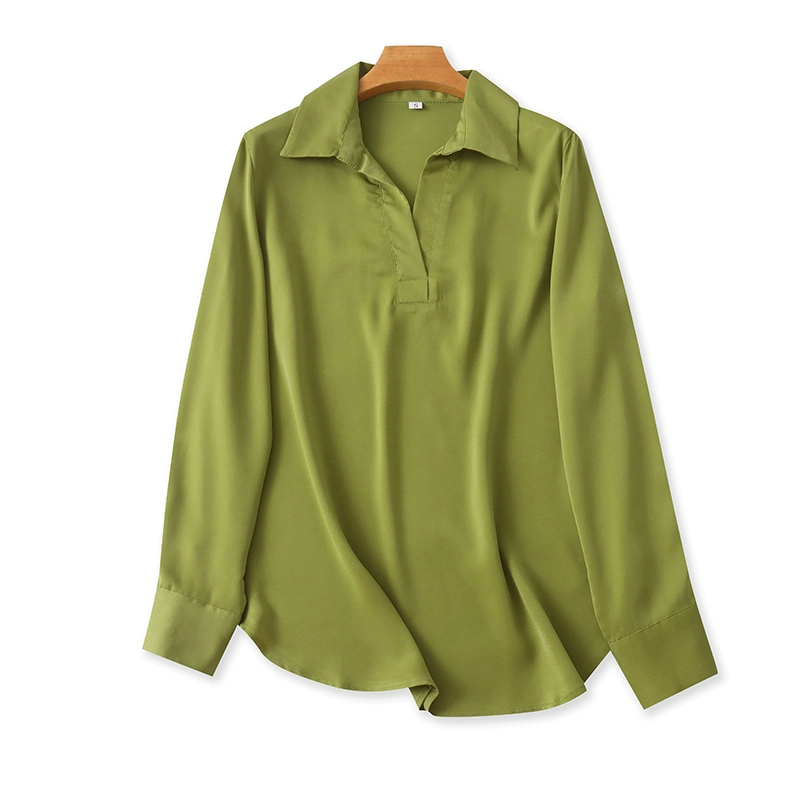 تقليد الحرير الجليد الحرير السترة بسيطة قميص متعدد الاستخدامات بأكمام طويلة