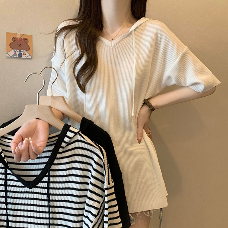 قميص نسائي صيفي شيفون بأكمام قصيرة، النسخة الكورية الجديدة، قميص سفلي يغطي البطن، تي شيرت متعدد الاستخدامات مقاس كبير، جزء علوي رفيع الخصر