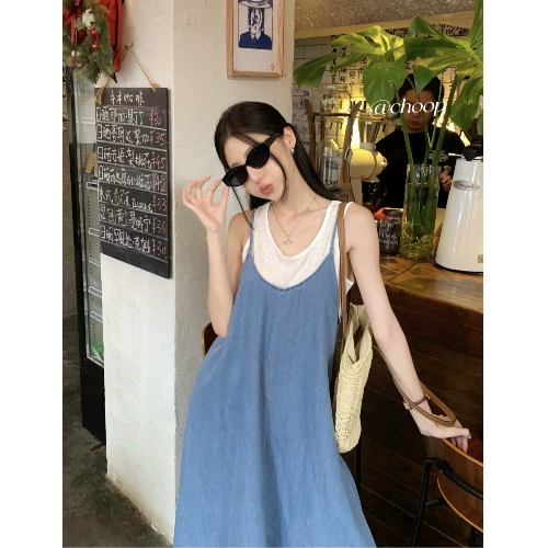 فستان الحمالات المرقعة من الدانتيل الفرنسي الصيفي اللطيف