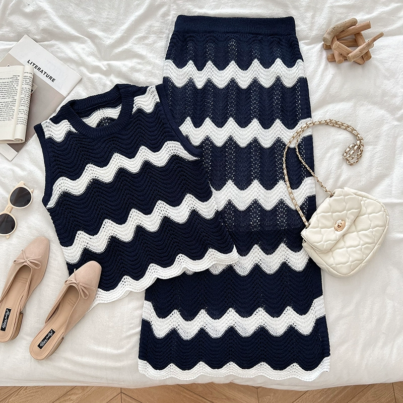 فستان منسوج مخطط بألوان متباينة على الطراز الفرنسي، تنورة نسائية صيفية جديدة بخصر مكشكش للتنحيف