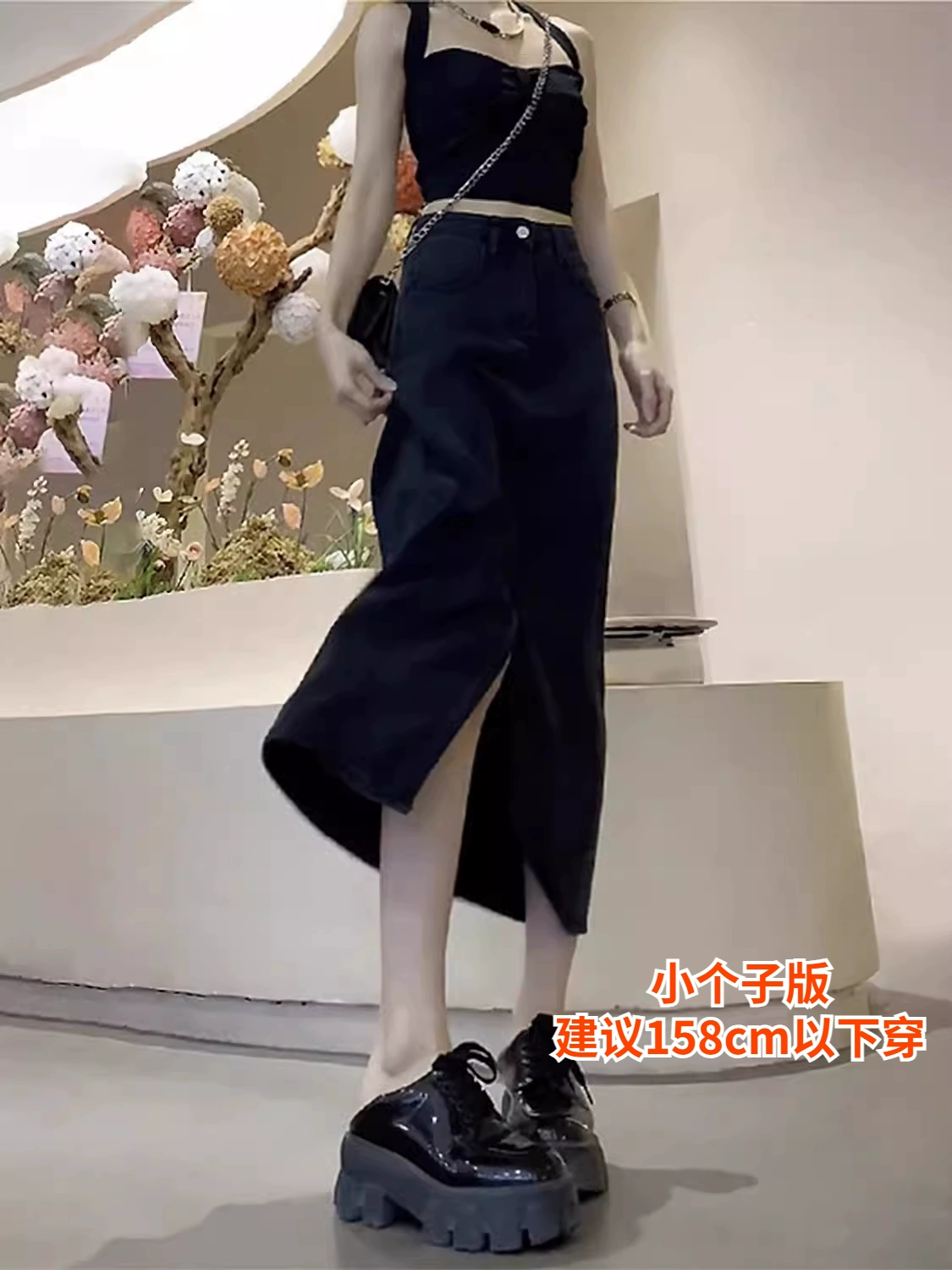 سترة تنورة صيفية من قماش الدنيم بتصميم كلاسيكي من kumikumi على شكل حرف A