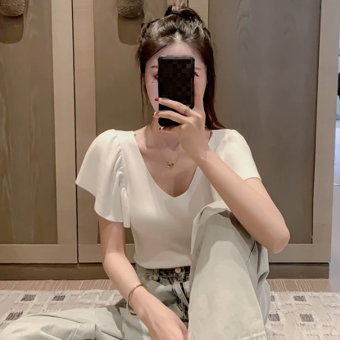 قمصان نسائية صيفية برقبة على شكل حرف V وسترات بأكمام قصيرة