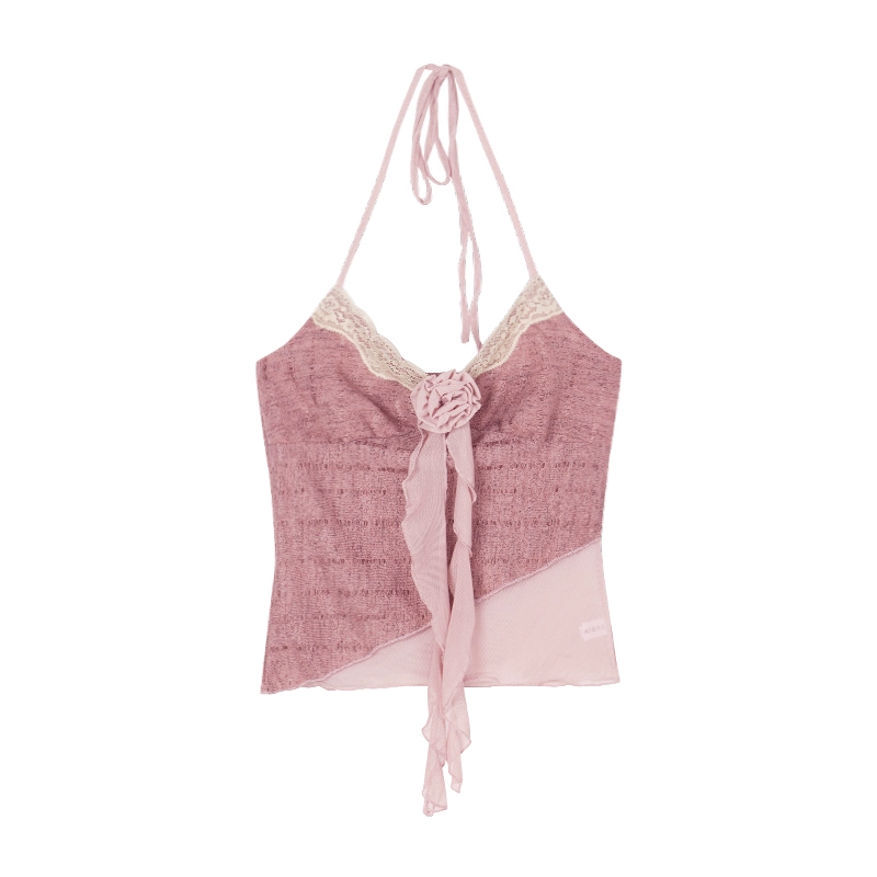 بدلة نسائية وردية بلا أكمام برقبة على شكل حرف U.