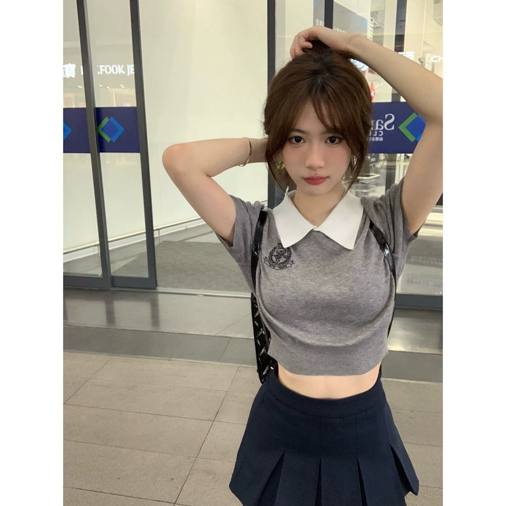 تنورة نسائية صيفية ذات ثنيات بياقة بولو وأكمام قصيرة محبوكة